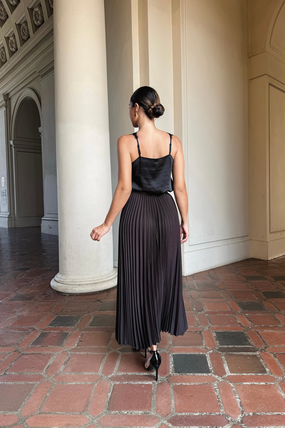 Celia Lace Trim Satin Top - Black
